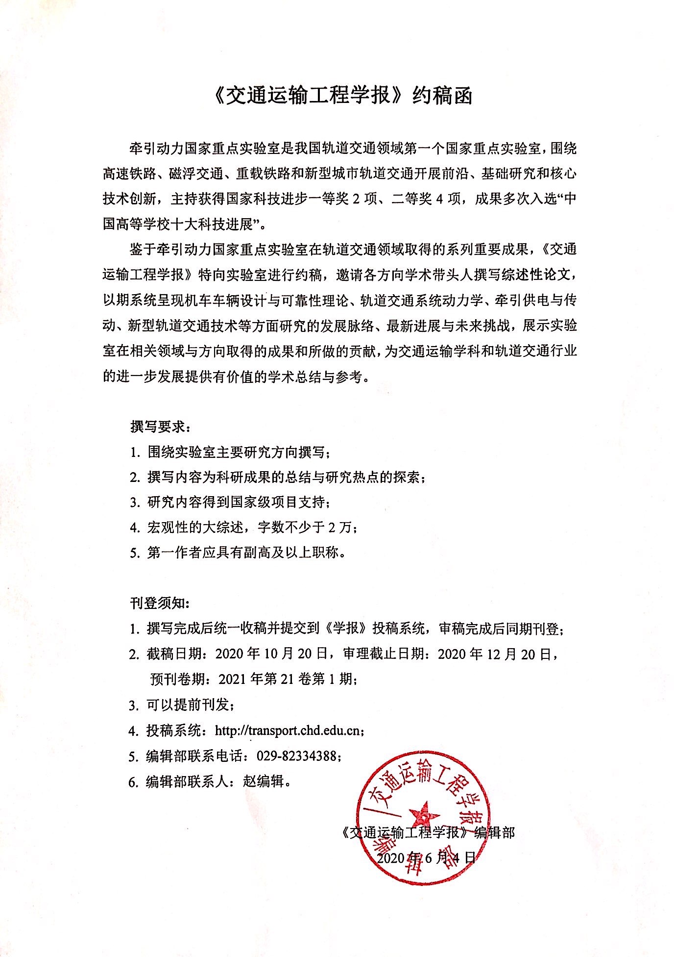 各位老师:《交通运输工程学报》现向澳门六合彩预测 进行综述约稿(详见附图),有意向的老师请于6月15日前,将拟定的文章题目发送给姜雪娇老师汇总([email protected]),后续具体撰写事宜将由澳门六合彩预测 组织商讨和推进。