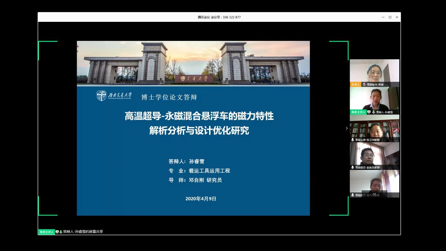 举行首场博士研究生在线学位论文答辩,申请此次答辩的是孙睿雪博士,导师是邓自刚研究员。