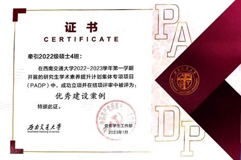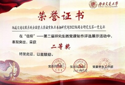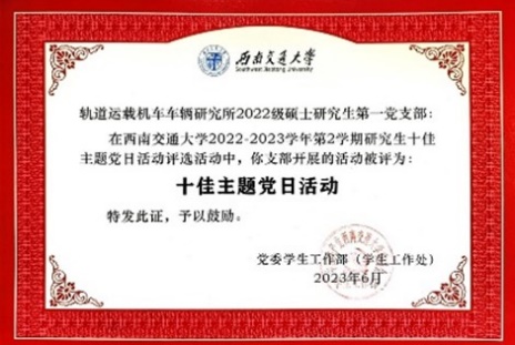 2022级硕士4班团支部获评西南交通大学2023年度校级示范团支部。