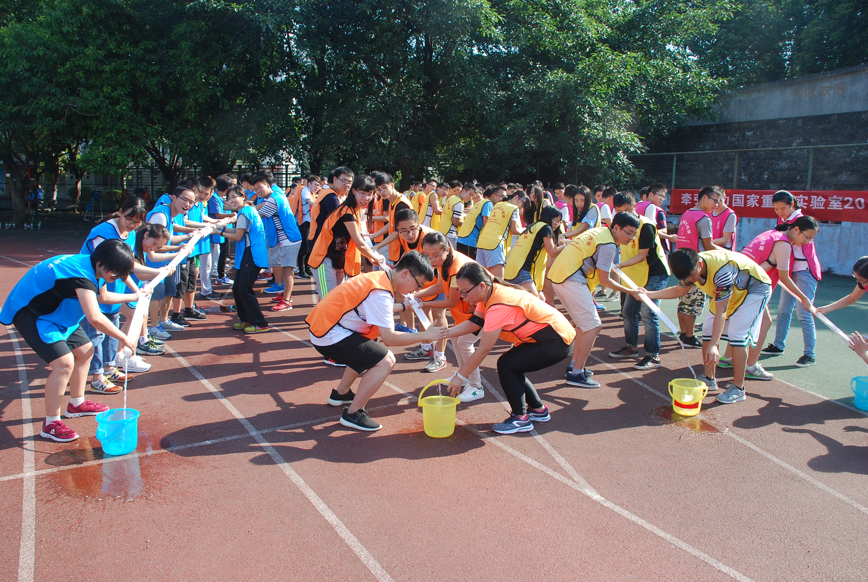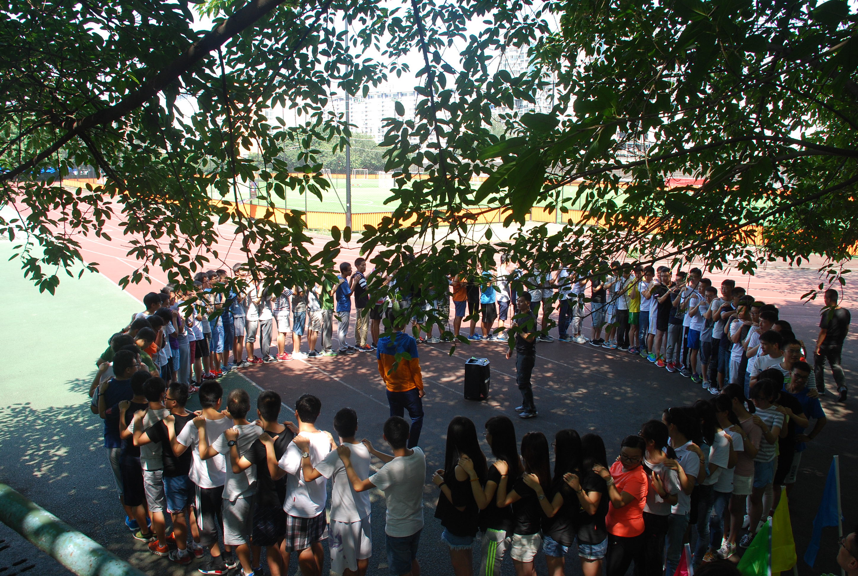 组织近百名硕士新生在九里校区足球场进行了素质拓展。