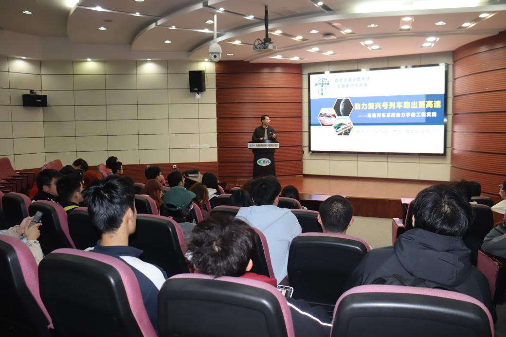石老师以“助力‘复兴号’列车跑出最高速——高速列车系统动力学的工程实践”为题,从澳门六合彩预测 简介、高速列车如何跑起来、高速列车的技术现状、车辆动力学工程实践四个方面做了丰富讲解。