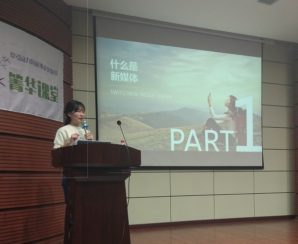 研究生箐华课堂在牵引红楼218小礼堂举行。本期箐华课堂由西南交通大学新媒体运营主管朱莹燕老师带来题为用追女孩的思维运营新媒体的讲座。参加本期课程的有辅导员郭鑫鑫老师、研究生会的学生干部、15级、16级研究生干部。