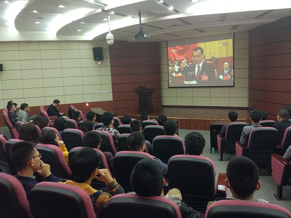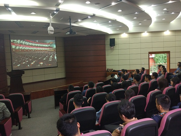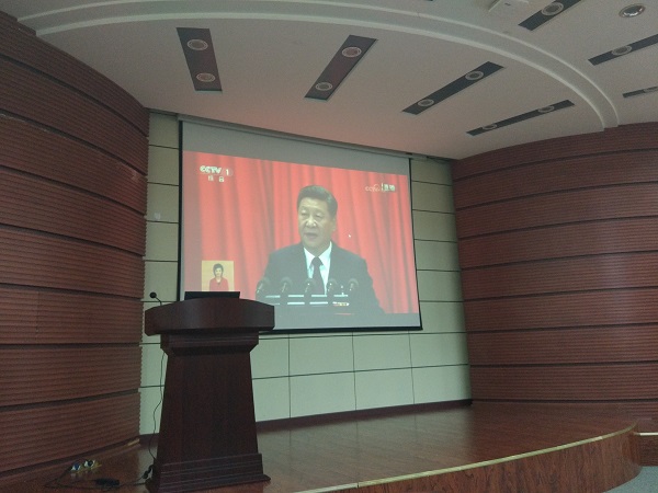 党委在218礼堂组织全体师生党员观看了十九大开幕会直播。