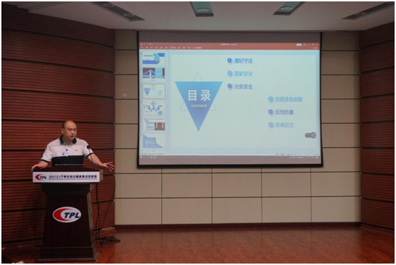学生工作组副组长余卉老师主持,学校保卫处李政老师主讲。