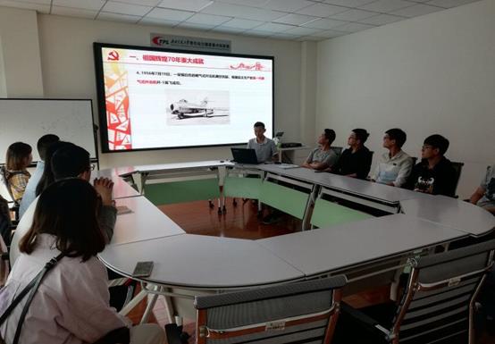 首先党支书周子伟向大家介绍了祖国辉煌70年的一些重大成就,其中包括了1949年10月1日,中华人民共和国开国大典。毛泽东按动电钮,升起了新中国第一面五星红旗,庄严宣布:“中华人民共和国中央人民政府成立了!”1952年7月1日,新中国修建的第一条铁路——成渝铁路通车。1964年10月16日,中国成功爆炸第一颗原子弹。2003年10月15日,航天员杨利伟乘“神舟五号”飞船成功升空,我国首次载人航天飞行圆满成功。以及2018年10月24日,港珠澳大桥正式通车运营等等重大成就。