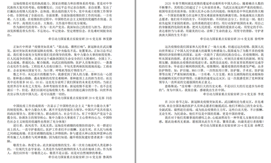 同学们都提到了中国共产党领导下的中国特色社会主义制度的优越性,提到了中华民族伟大的抗疫精神。中华民族自古以来就有埋头苦干的人,就有拼命硬干的人,就有舍身求法的人,就有为民请命的人。他们是中国的脊梁,他们是国之英雄,而正是这些英雄们在国难当头时,用他们自己的脊梁挑起华夏民族的命运。我们要致敬逆行者,敬畏自然,守护生命。作为一名共产党员,在国家和人民需要我们的时候,我们应该自觉请命,以身作则。作为一名学生党员,应该用自己的方式,尽最大的努力为抗击疫情做出一份贡献。