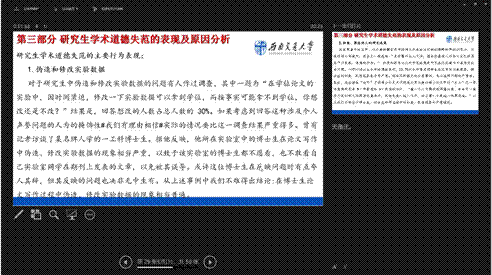接下来,宋老师列举一些研究生学术道德失范的主要行为,如伪造和修改实验数据、抄袭剽窃他人研究成果等。他根据实际调查结果,带领大家分析这些行为产生的原因,并提醒同学们要重视学术道德问题,规范自身学术行为。
