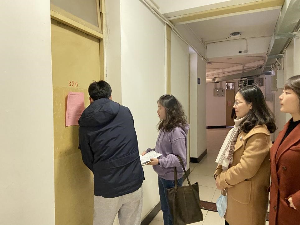 学习结束后,学生工作组老师走访了眷诚斋8号楼、15号楼、扬华斋4号楼,对2020级、2021级部分学生宿舍进行随机抽查,重点关注宿舍卫生、用电安全以及防火等方面,对发现的问题现场提出并予以整改。