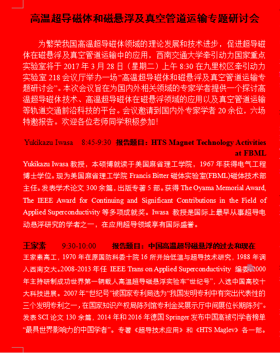高温超导磁体和磁悬浮及真空管道运输专题研讨会