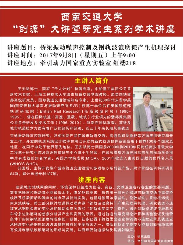 西南交通大学“创源”大讲堂研究生系列学术讲座