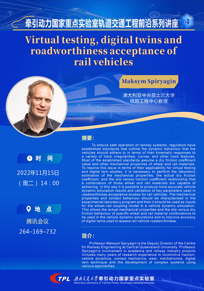 牵引动力国家重点澳门六合彩预测 轨道交通工程前沿系列讲座4