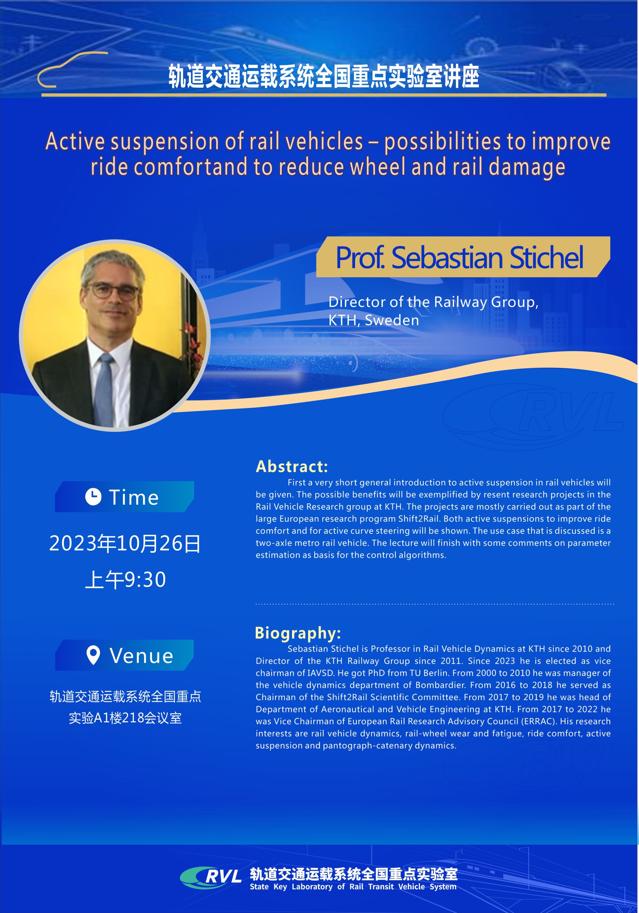 地点:轨道交通运载系统全国重点实验A1楼218会议室