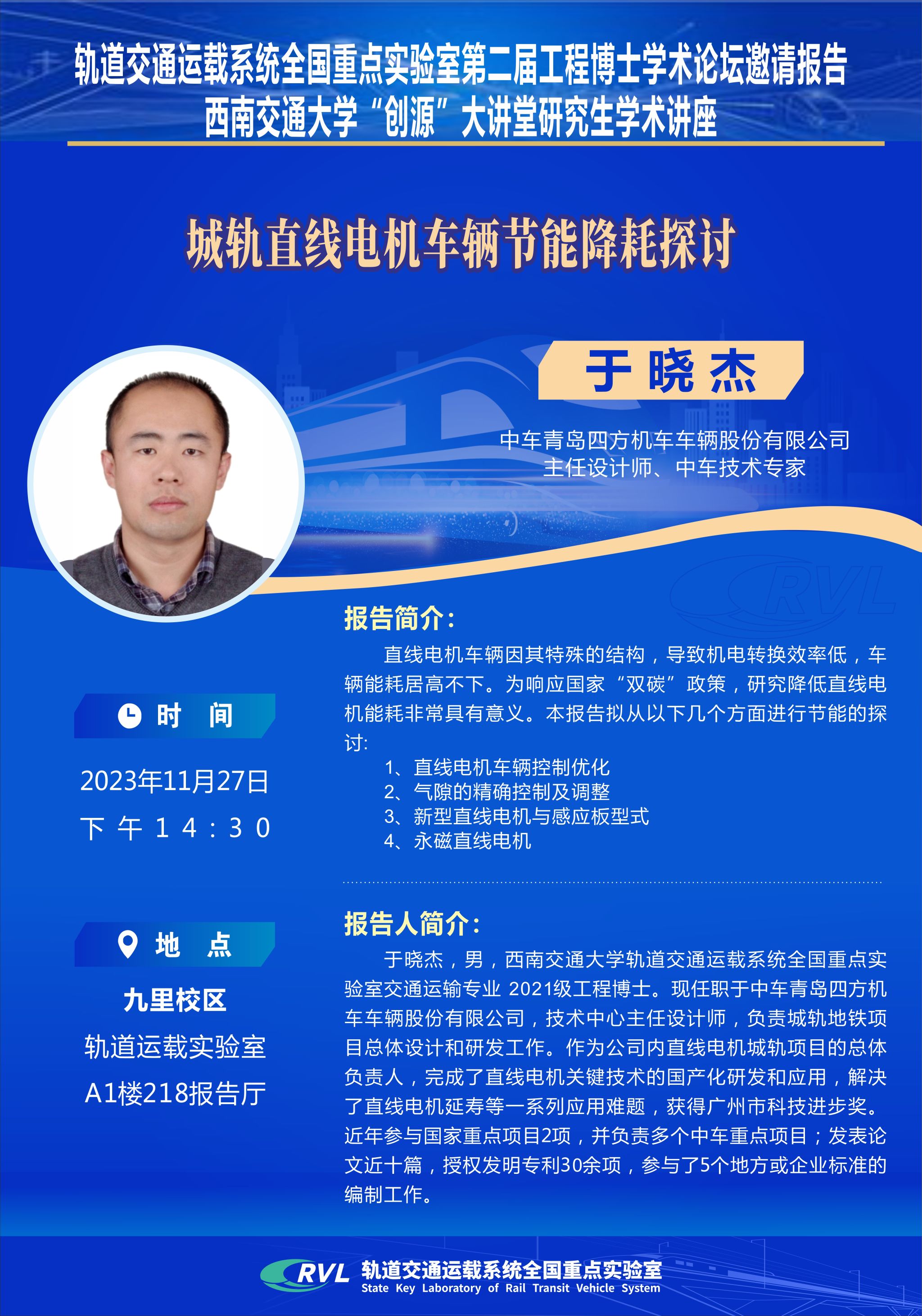 地点:轨道交通运载系统全国重点实验A1楼218会议室