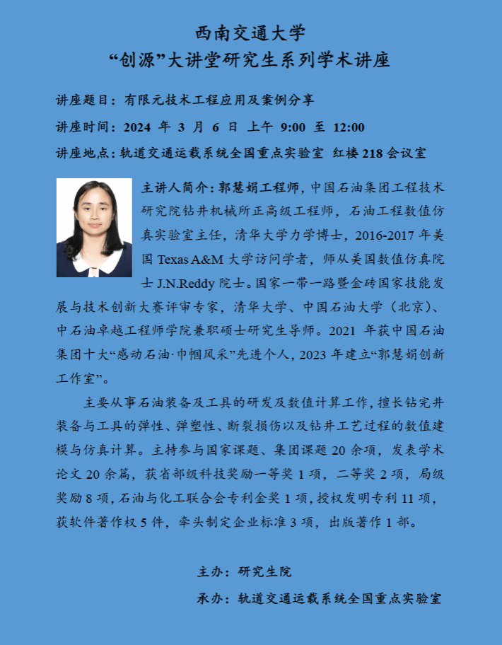 西南交通大学“创源”大讲堂研究生系列学术讲座