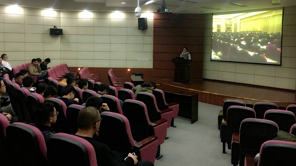 张梦乡首先向全体党员同志介绍了高校思政工作会议的主要内容和习近平总书记在会议上的重要讲话。并播放一段视频让全体党员同志共同学习习近平总书记在全国高校思政会议上的讲话,接着又针对目前高校思政工作存在亲和力不够,针对性不强等弊端,带领大家学习了教育部部长陈宝生同志关于高校思政工作如何革除弊端的讲话。