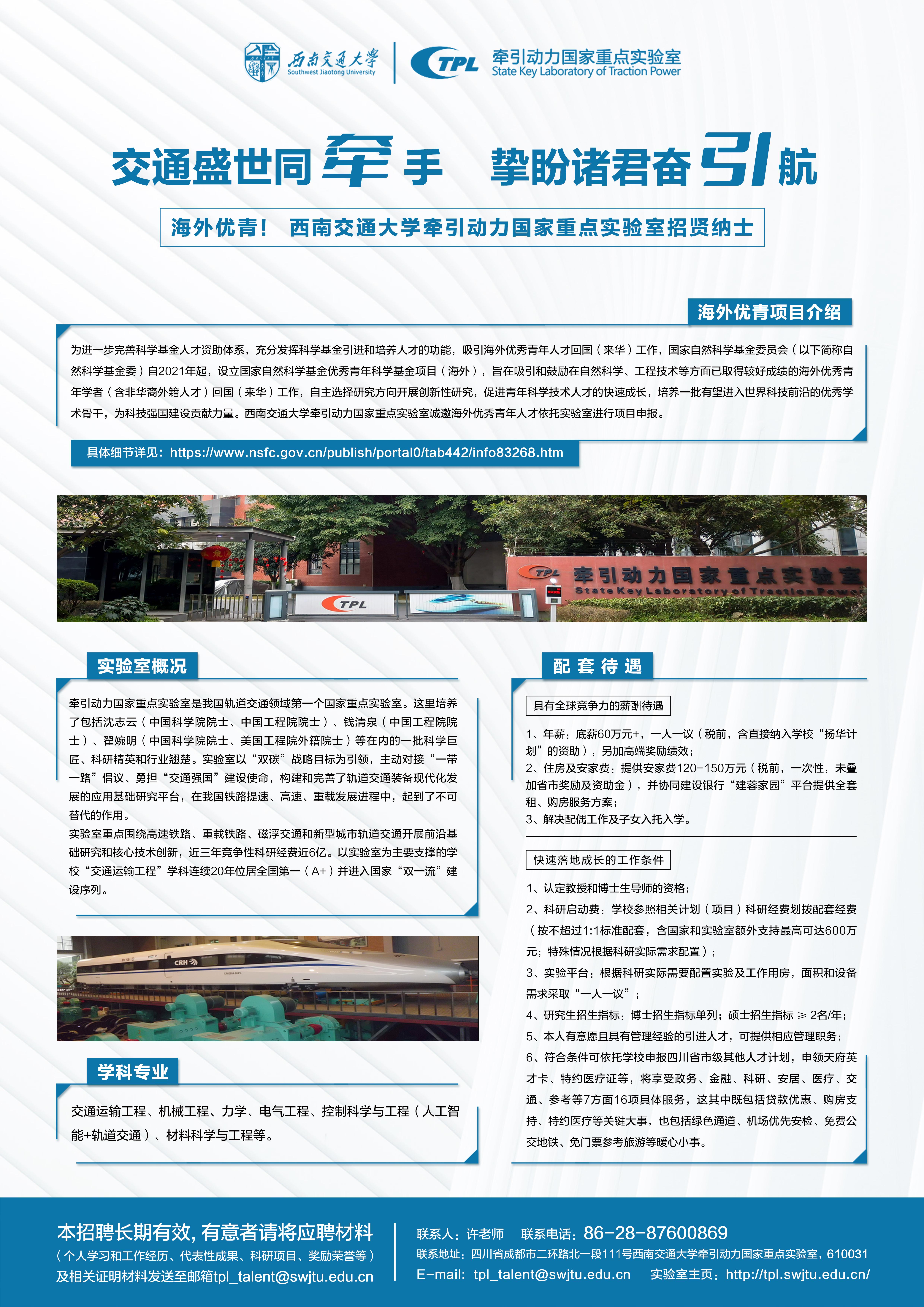 海外优青!西南交通大学牵引动力国家重点澳门六合彩预测 招贤纳士