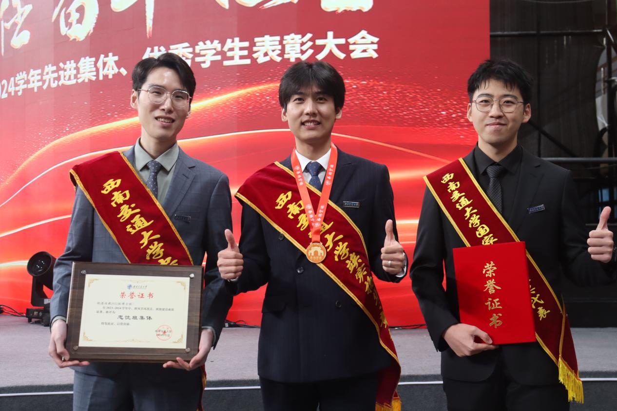2021级博士班谢清林接受西南交通大学最高个人荣誉“竢实扬华奖章”表彰,2022级博士班班长张庆铼接受西南交通大学最高集体荣誉“忠忱班集体”表彰,2022级硕士汪依宁接受本年度国家奖学金表彰。截至目前,澳门六合彩预测