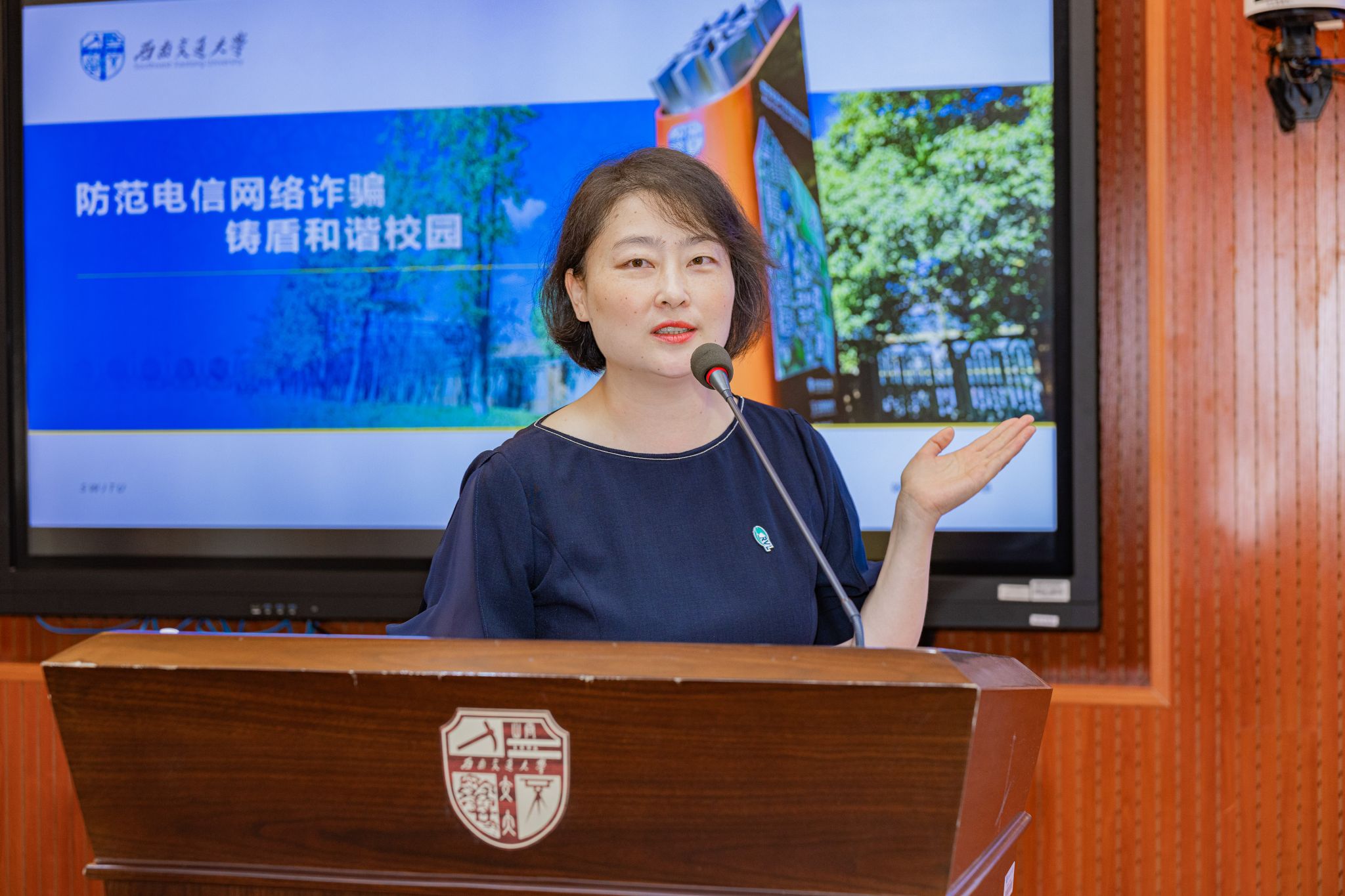 随后,团委书记余卉老师结合《学生涉电信网络诈骗警示案例》,重点从线上线下的各类诈骗案件、预防电信网络诈骗、诈骗辨别能力提升等角度为在场学生提供个人反诈提示,希望同学们将案例当镜子,时刻保持警惕,共建安全校园。