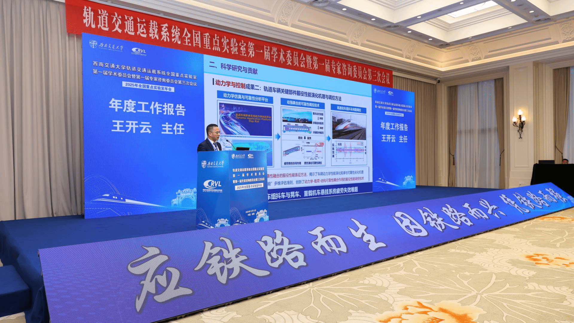 | 王开云主任做年度工作报告 | 翟婉明院士 作题为“高速铁路线形最优动态性能设计原理、调控技术及工程应用”的报告 |