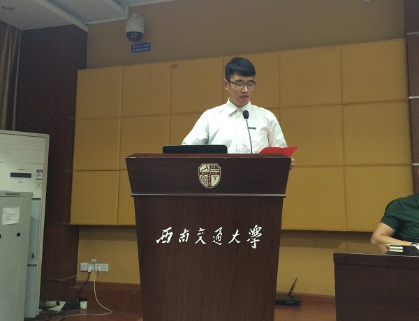 之后,教师代表黄志辉老师发言。他向同学们提了三点要求,其一,摆正自己对待科研的态度,态度决定一切;其二,要有系统的观念,在做好本系统的同时也要服从大系统;其三,要具有踏实的精神做科研。黄老师精彩的发言得到了同学们热烈的掌声。
