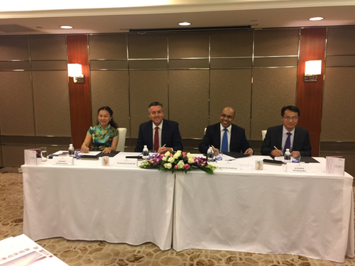 副主任温泽峰研究员、蒙纳什大学铁道技术研究所主任Ravi Ravitharan、澳大利亚交通与基础设施部部长Darren Chester和西南交通大学高晓蓉教授。