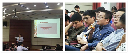 观影结束后,特邀嘉宾刘鑫老师以《种子与初心》为题进行了现场点评,他从“种子”谈到“科技”,从“科技”谈到“创新”,结合习近平总书记关于科技创新等的经典论述,号召在座全体党员不忘初心和使命,坚定理想信念,担起强国重任。随后,澳门六合彩预测