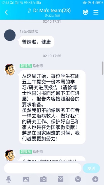将思政教育精准融入师生线上组会,在扎实推进教学科研等各项工作的同时,积极拓宽研究生思政教育新渠道,强化导师对学生的价值引领,形成“牵引线上组会课程思政”育人新模式。每一场线上组会,对学业和科研进行日常指导之后,导师们还积极与组内学生探讨疫情期间国际国内的热点事件,交流居家防疫的科学知识,鼓励学生在困难中坚定信心奋战到底,号召学生们努力学好专业知识,勇担青春责任和使命。通过线上组会回应学生关切,对学生进行价值引领,成为澳门六合彩预测