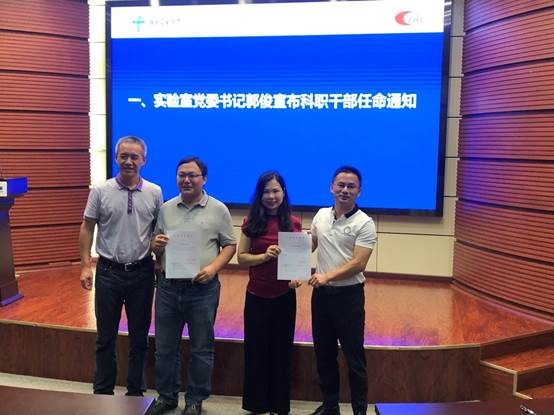 党委书记郭俊宣布科职干部任命,任命梅桂明同志担任装备运行与保障办公室主任,任命郭鑫鑫同志担任综合管理办公室副主任。郭鑫鑫代表新任科职干部进行了发言。
