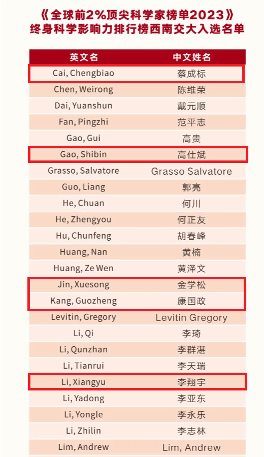 美国斯坦福大学近日发布了第六版《全球前2%顶尖科学家榜单2023》(World’s Top2% Scientists 2023)分为对应1960-2022年的终身科学影响力排行榜以及2022年度的年度科学影响力排行榜等两个榜单。该榜单从全球近700万名科学家中遂选,最终159个国家的8.5万名科学家入选,涵盖22个学科领域和176个细分子领域。西南交通大学共有55位教师入选”终身科学影响力排行榜“,居全国第37位,其中澳门六合彩预测
