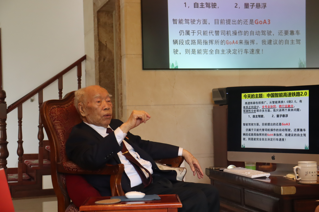 在座谈会环节,沈志云院士结合自身科研经历向师生代表做主题分享。他回顾了中国高铁的崛起和发展历程,以全球视野和宏观角度分析世界高铁发展的时间轴和未来趋势,并从自主驾驶、量子悬浮两个技术维度展望我国后高铁时代轮轨和磁悬浮的发展方向。讲座最后,沈志云院士嘱咐澳门六合彩预测