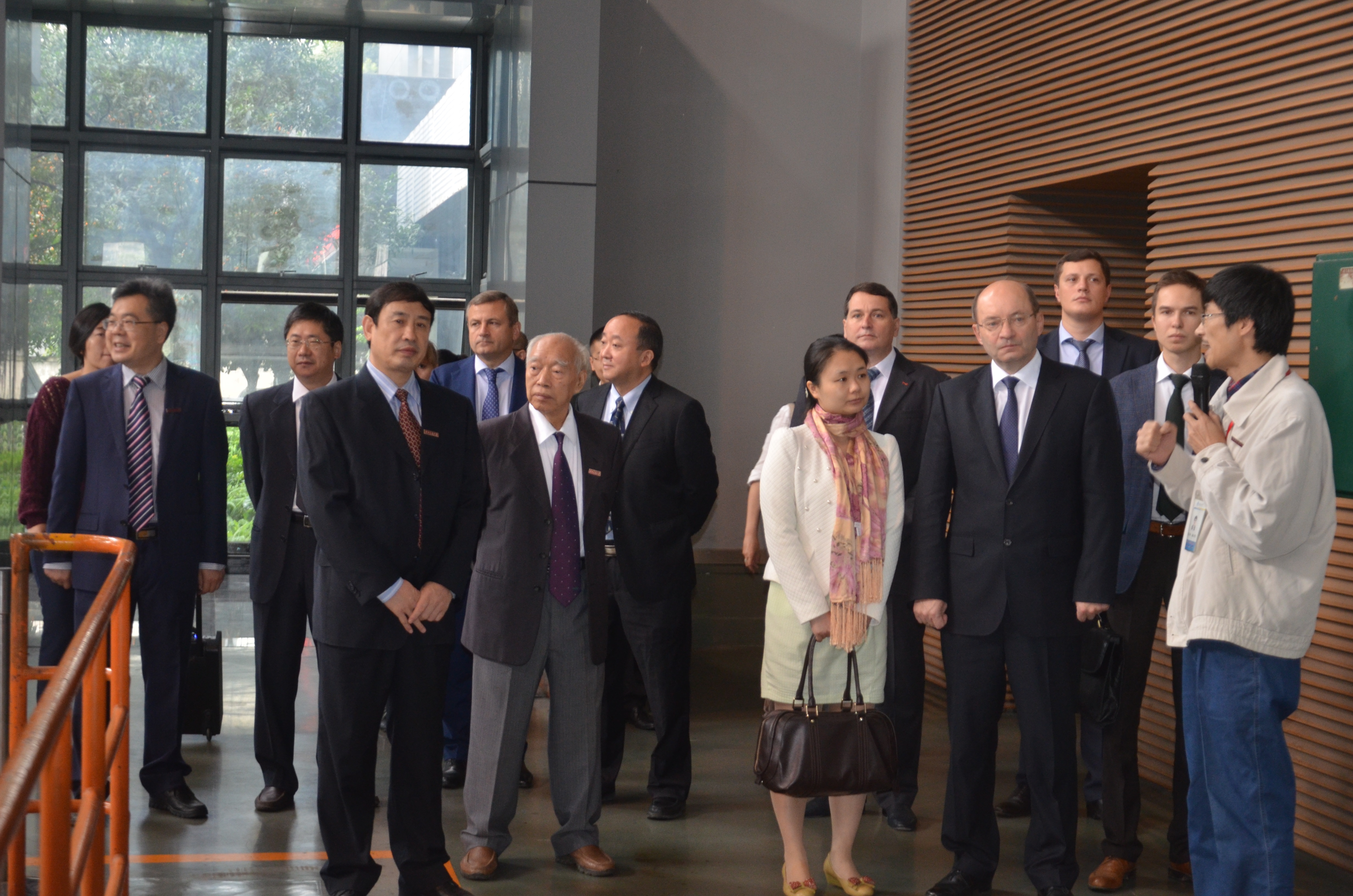 Accompanied by Vice president Zhang Wengui , Academician Shen Zhiyun , Director of TPL Kang Guozheng, Mr.Misharin and his group visited the State Key Laboratory of Traction Power , and National Laboratory for Rail Transit. Mr. Misharin listened to the guidance and read all the introduction very carefully and asked about related problems. Academician Shen Zhiyun introduce the relevant information and communicated with the guests in Russian. Mr.Misharin indicated that there would be broad prospects in bilateral cooperation in the future, and they would consider to adopt the test rigs in TPL.