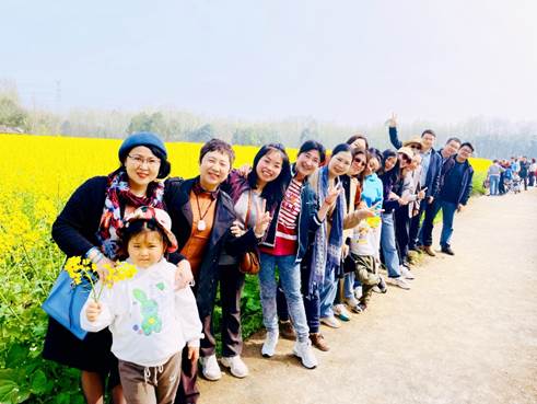 三月八日下午,女教职工们来到五星村,遍野都是竞相怒放的油菜花,放眼望去一片金黄,令人叹为观止。感受着油菜花海的独特清香,女教职工们争先恐后地涌入田间与花斗艳,花海中洋溢着大家的欢声笑语。