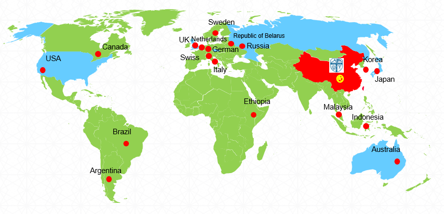 Distribution of countries and regions cooperating and communicating with the State Key Laboratory of Traction Power
