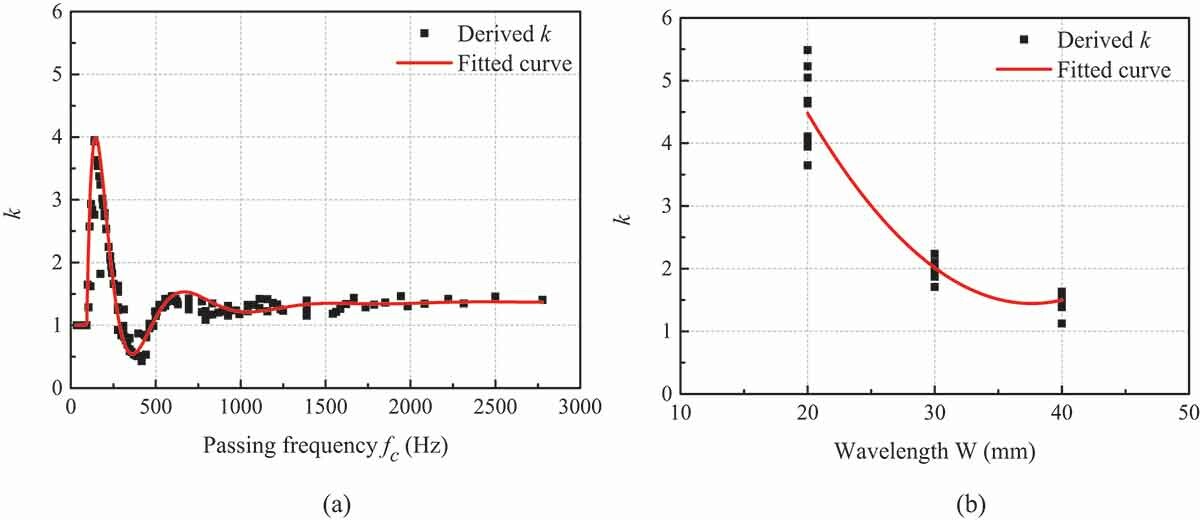 Fig. 13. Fitted curves for cases with wavelengths (a) longer than, and (b) lower and equal to 40 mm.