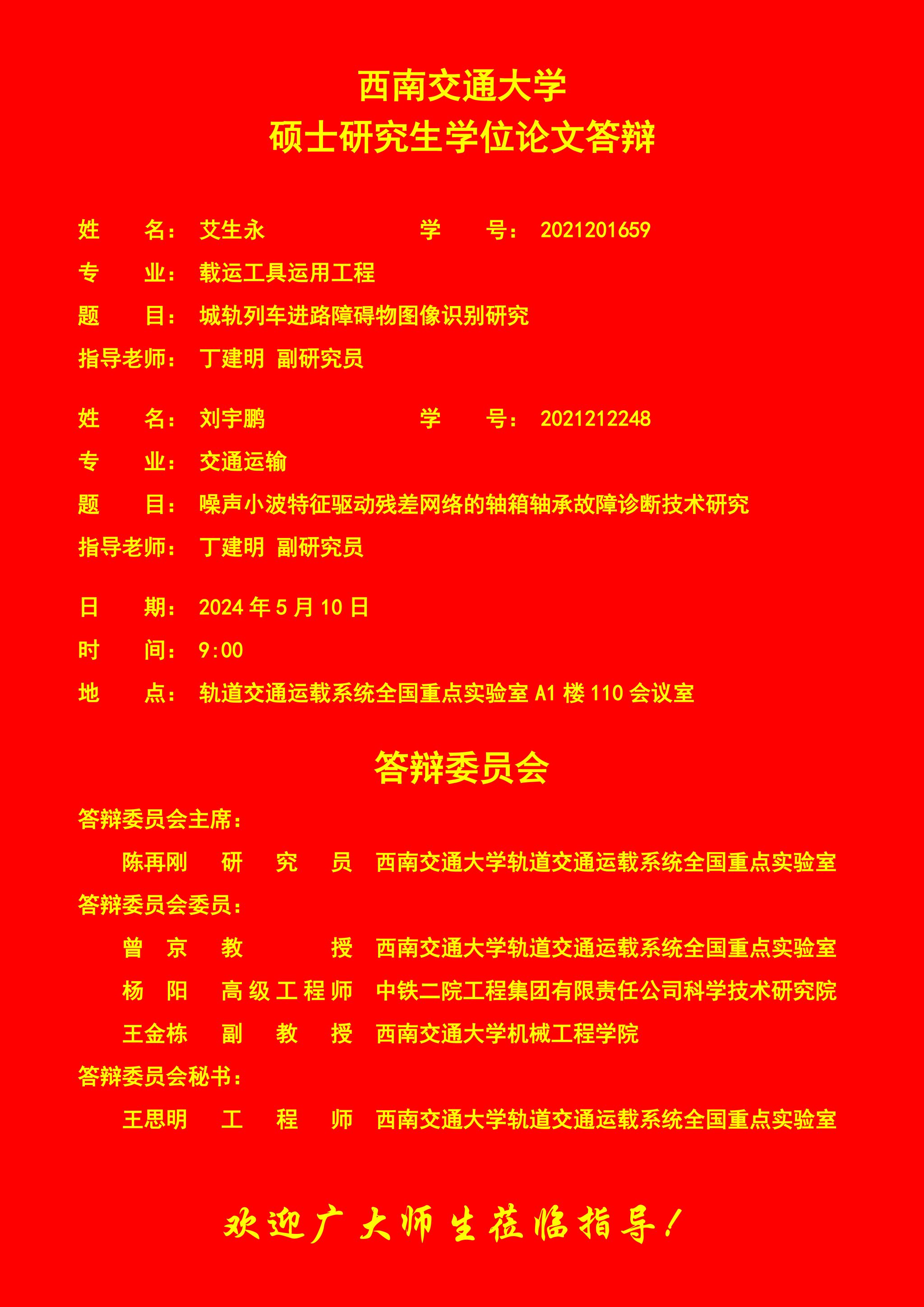 西南交通大学艾生永、刘宇鹏硕士学位论文答辩