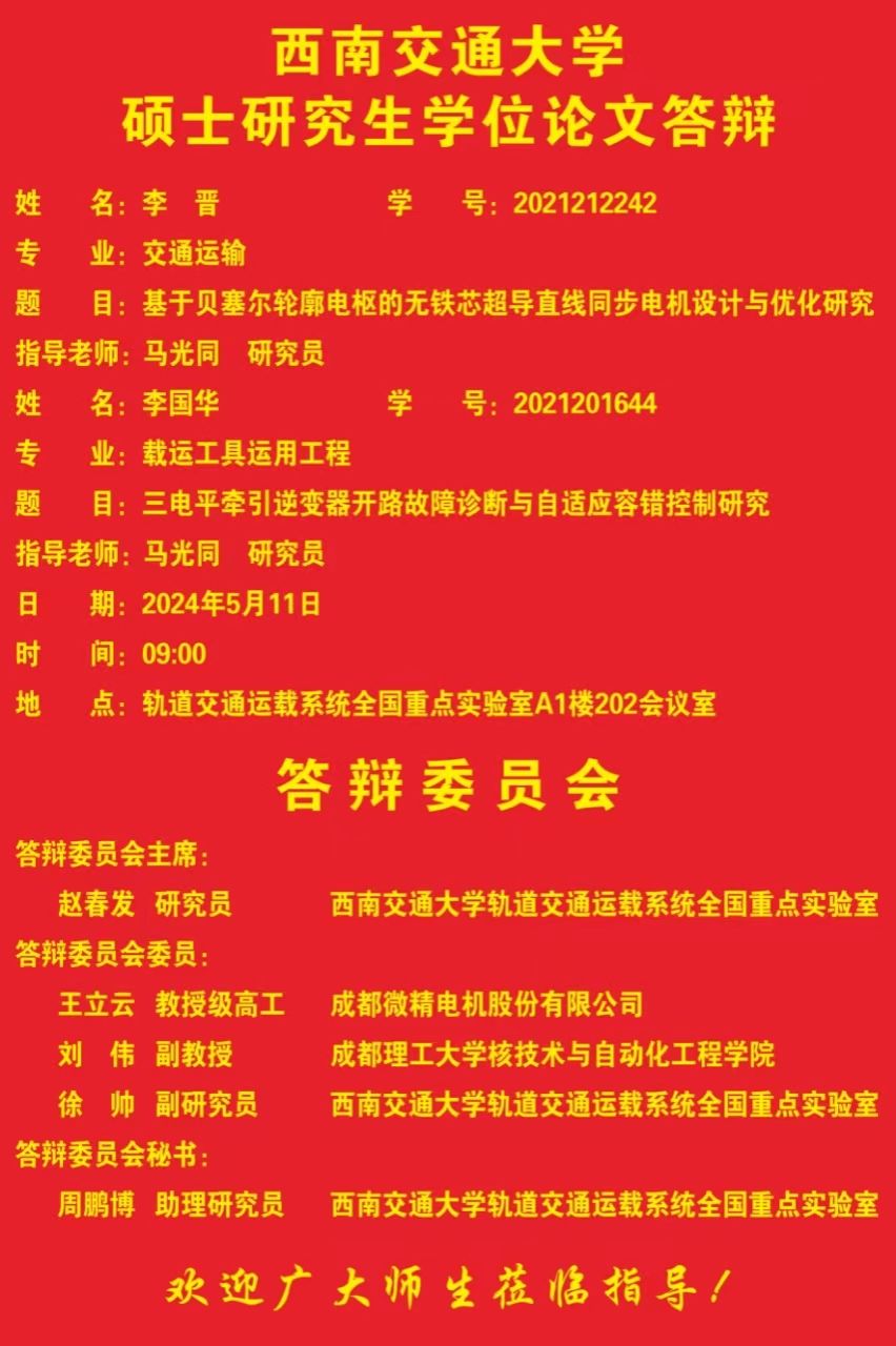 西南交通大学李晋、李国华硕士学位论文答辩海报
