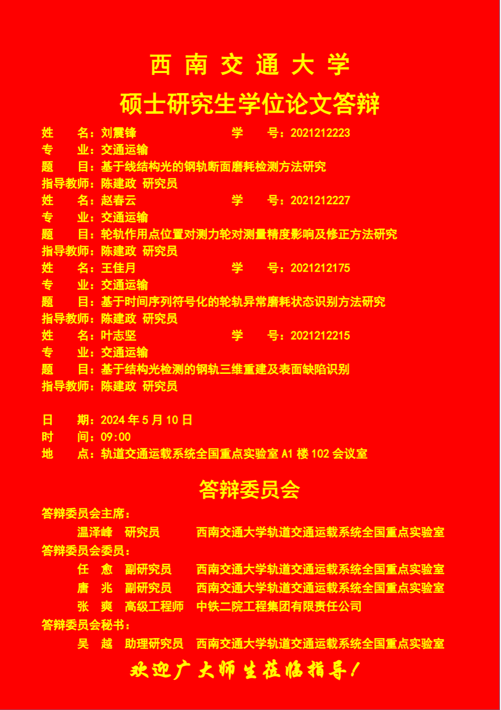 西南交通大学刘震锋、叶志坚、王佳月、赵春云硕士学位论文答辩