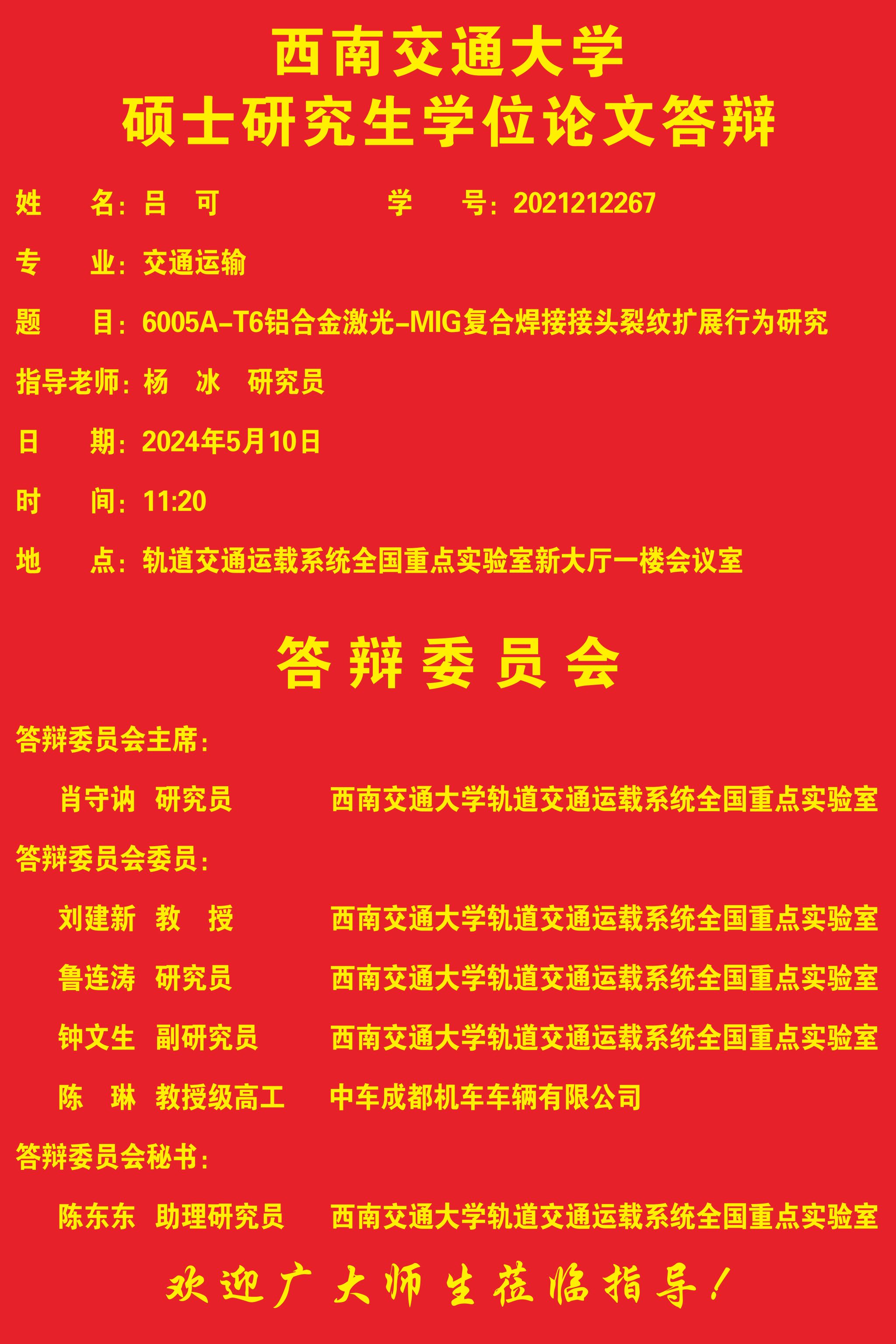 西南交通大学吕可硕士学位论文答辩