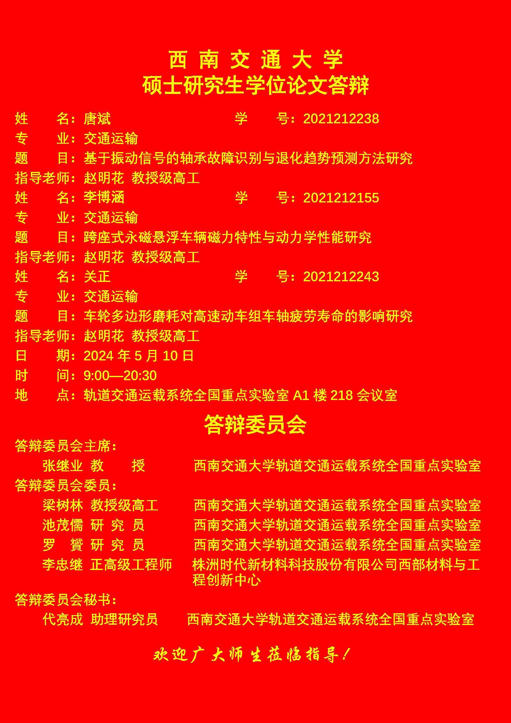 西南交通大学唐斌、李博涵、关正硕士学位论文答辩