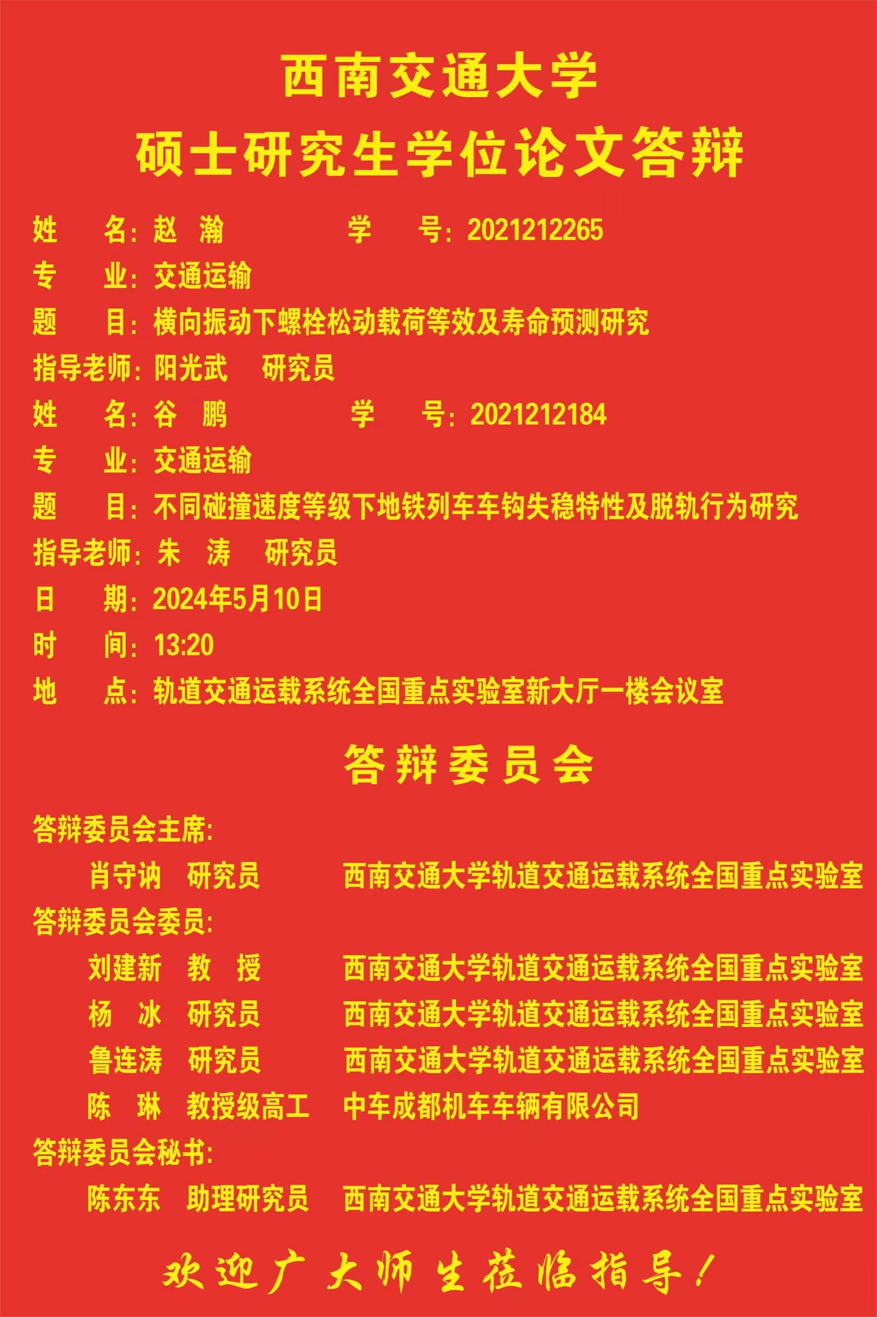 西南交通大学张艺怀、乔笑冉、吴潇、李世杰硕士学位论文答辩