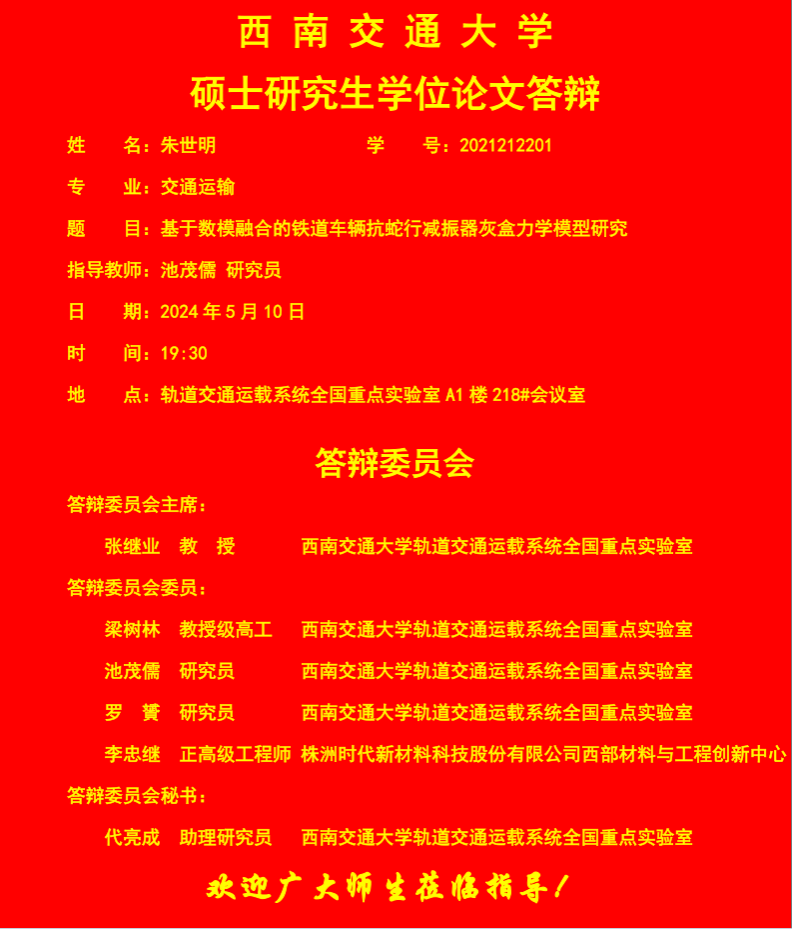 西南交通大学郑绍东 周昊南、 张少轩、 黄初贤硕士学位论文答辩