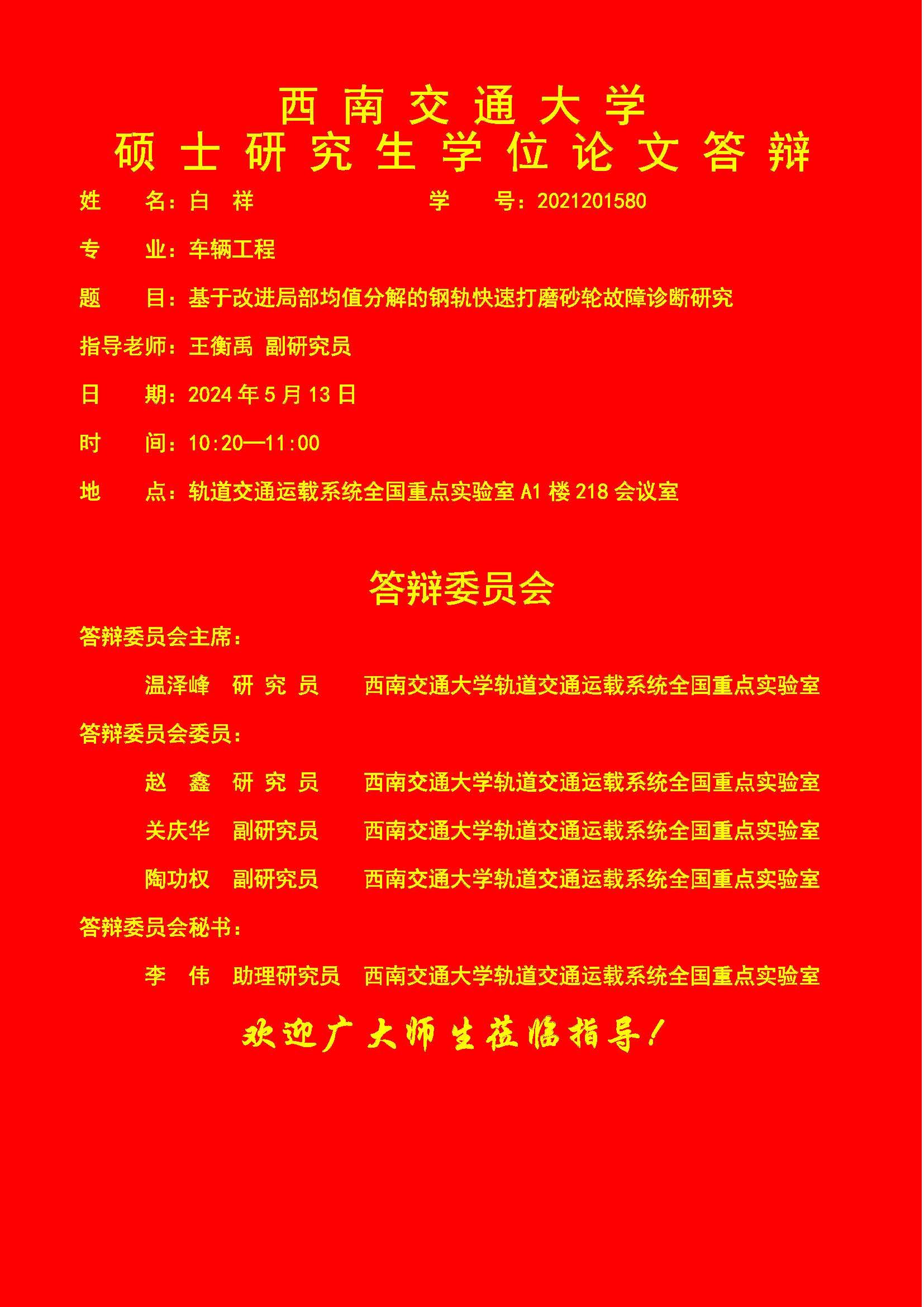 西南交通大学白祥硕士学位论文答辩