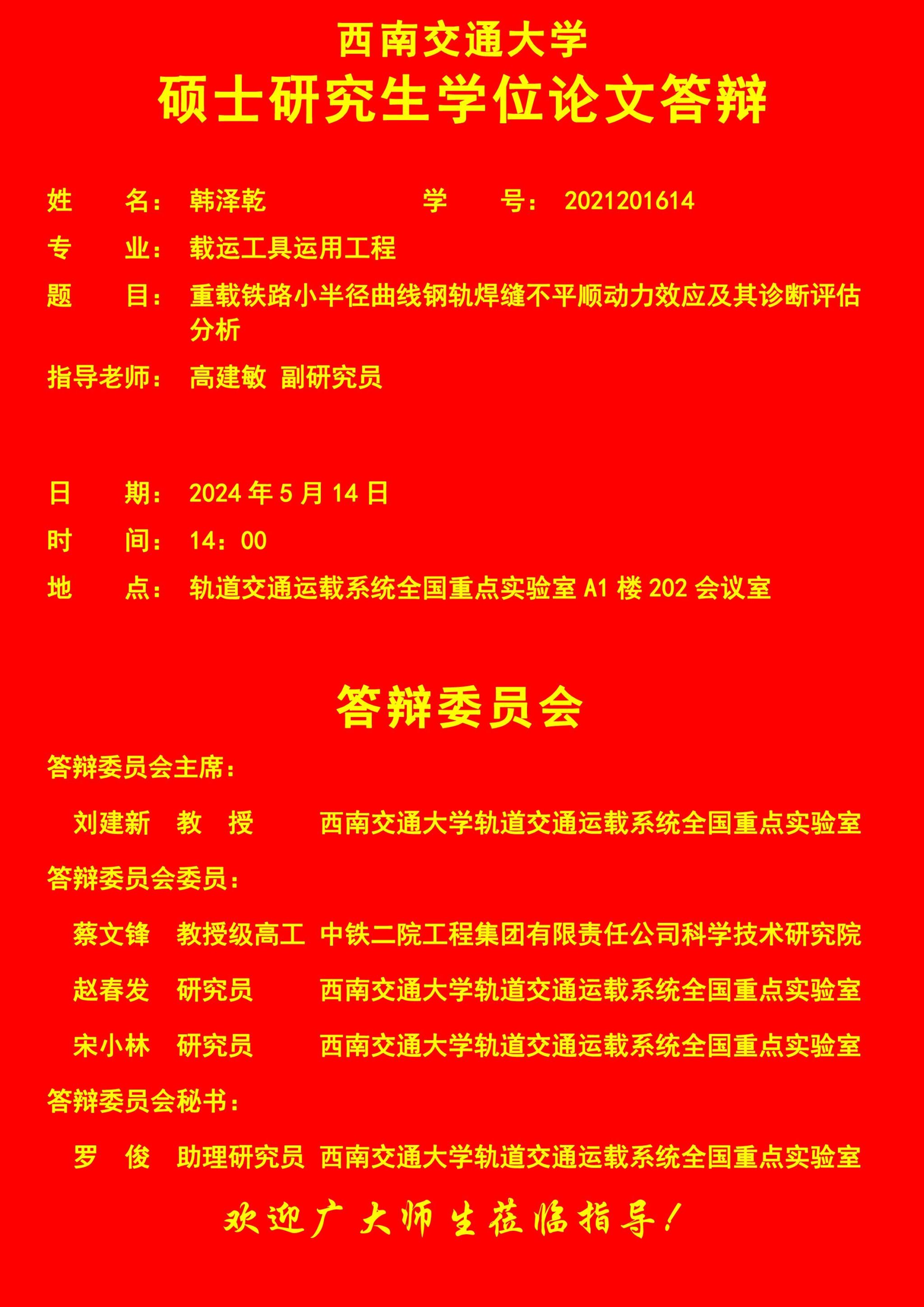西南交通大学韩泽乾硕士论文答辩