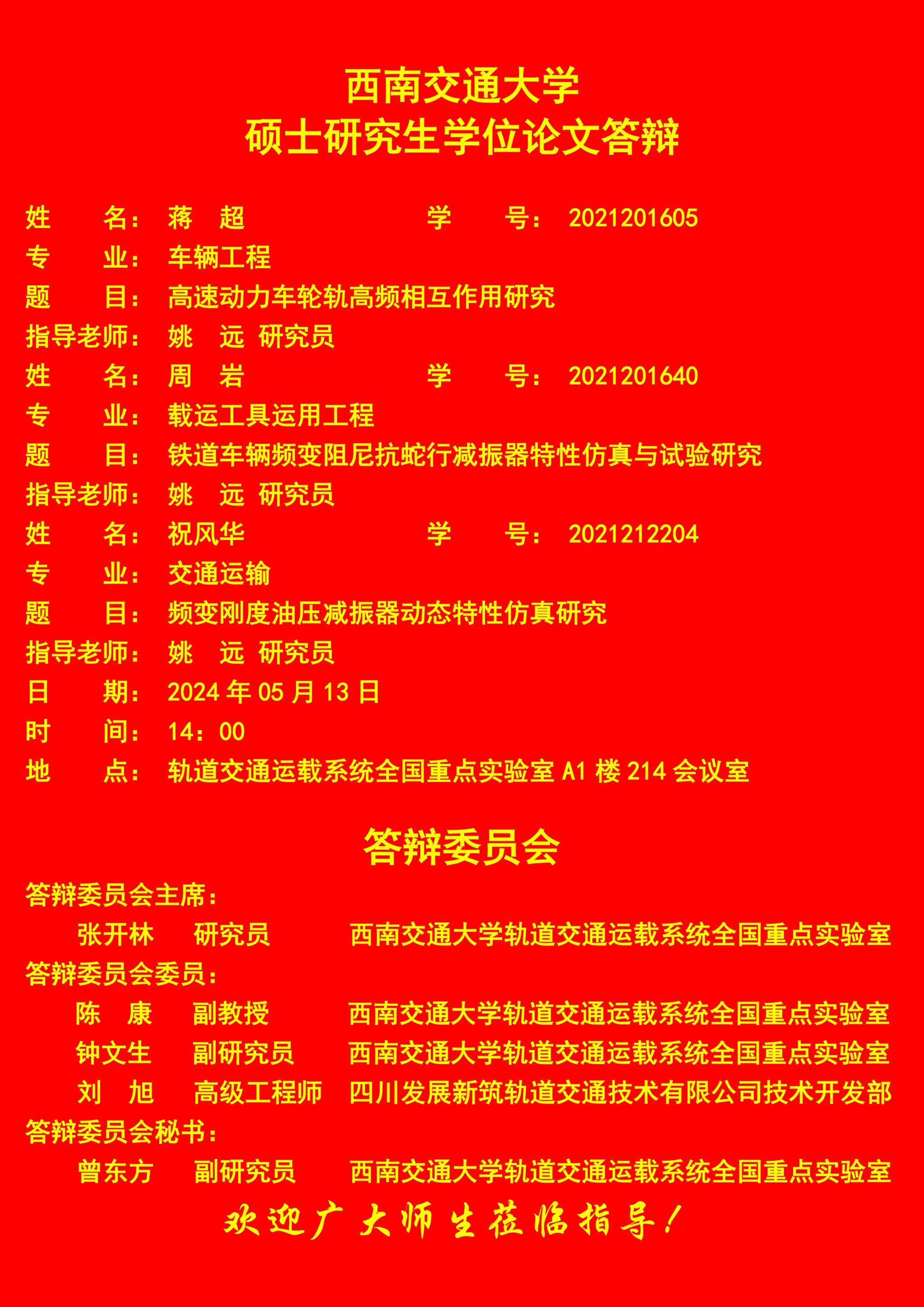 西南交通大学蒋超、周岩、祝风华硕士学位论文答辩