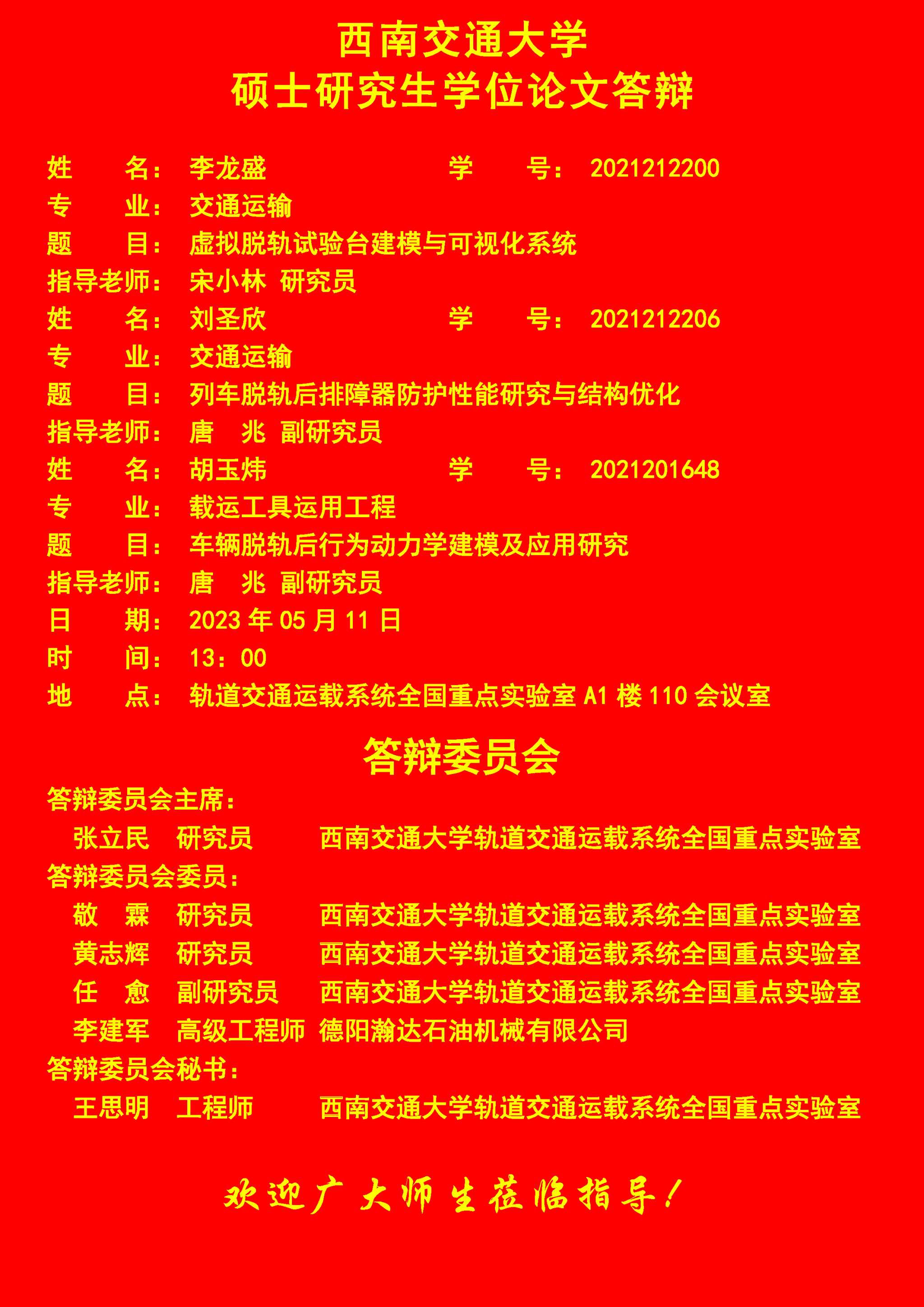 西南交通大学李龙盛、刘圣欣、胡玉炜硕士学位论文答辩