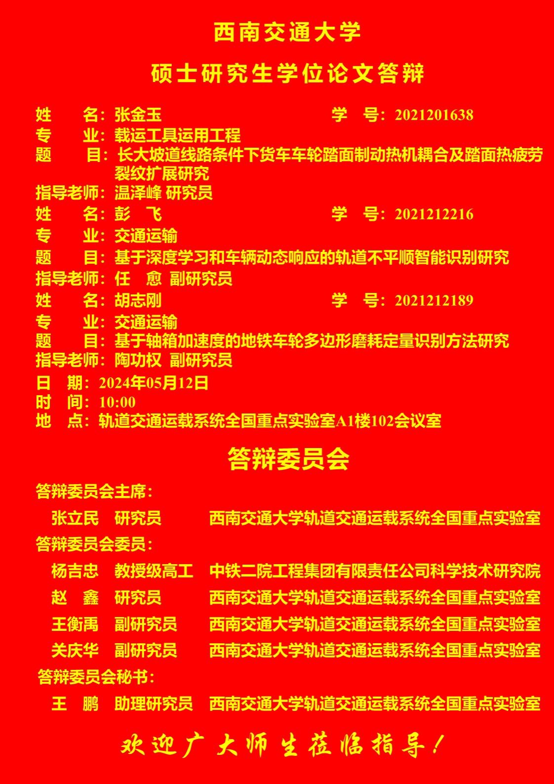 西南交通大学张金玉、彭飞、胡志刚硕士学位论文答辩