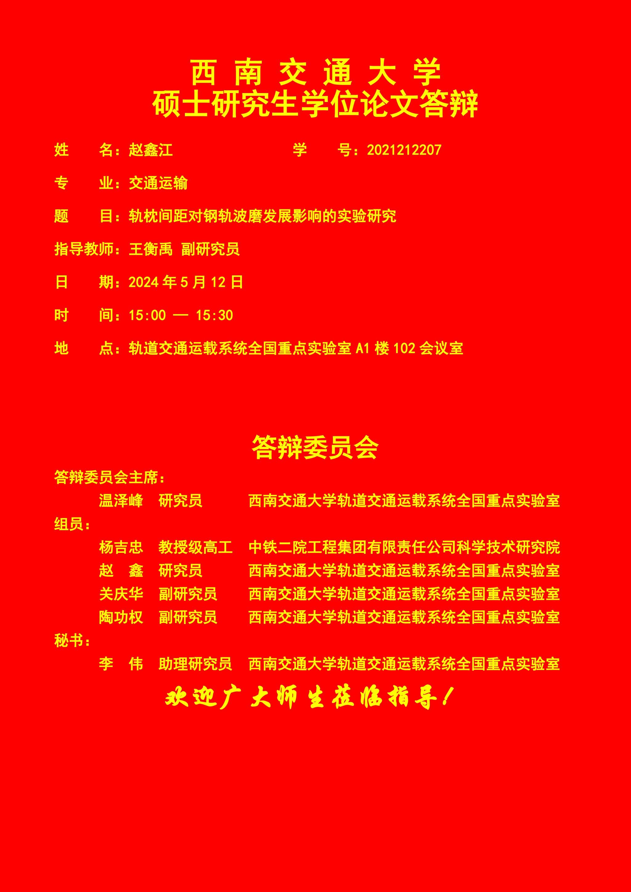 西南交通大学赵鑫江硕士学位论文答辩