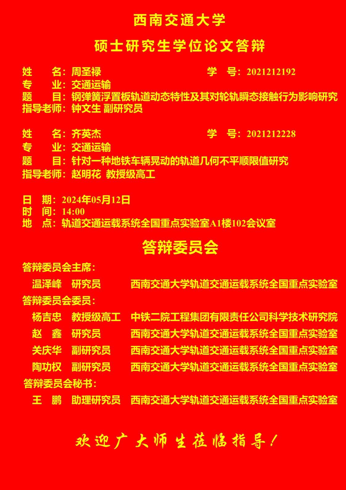 西南交通大学周圣禄、齐英杰硕士学位论文答辩