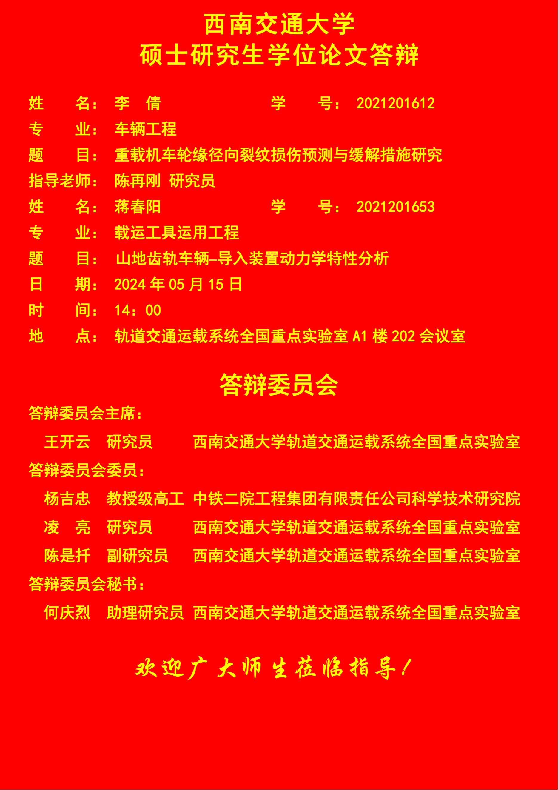 西南交通大学李倩、蒋春阳硕士学位论文答辩