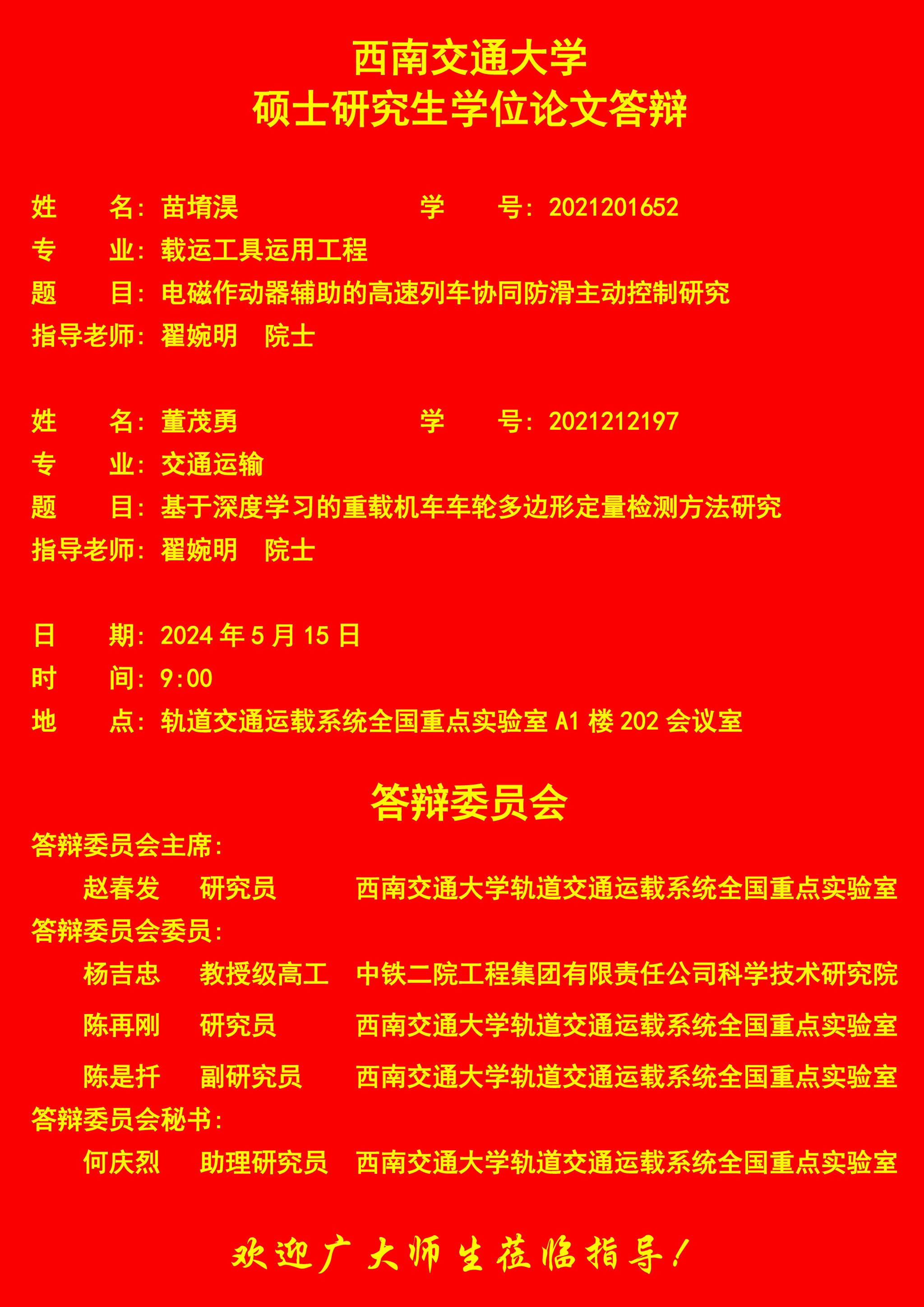西南交通大学苗堉淏、董茂勇硕士学位论文答辩